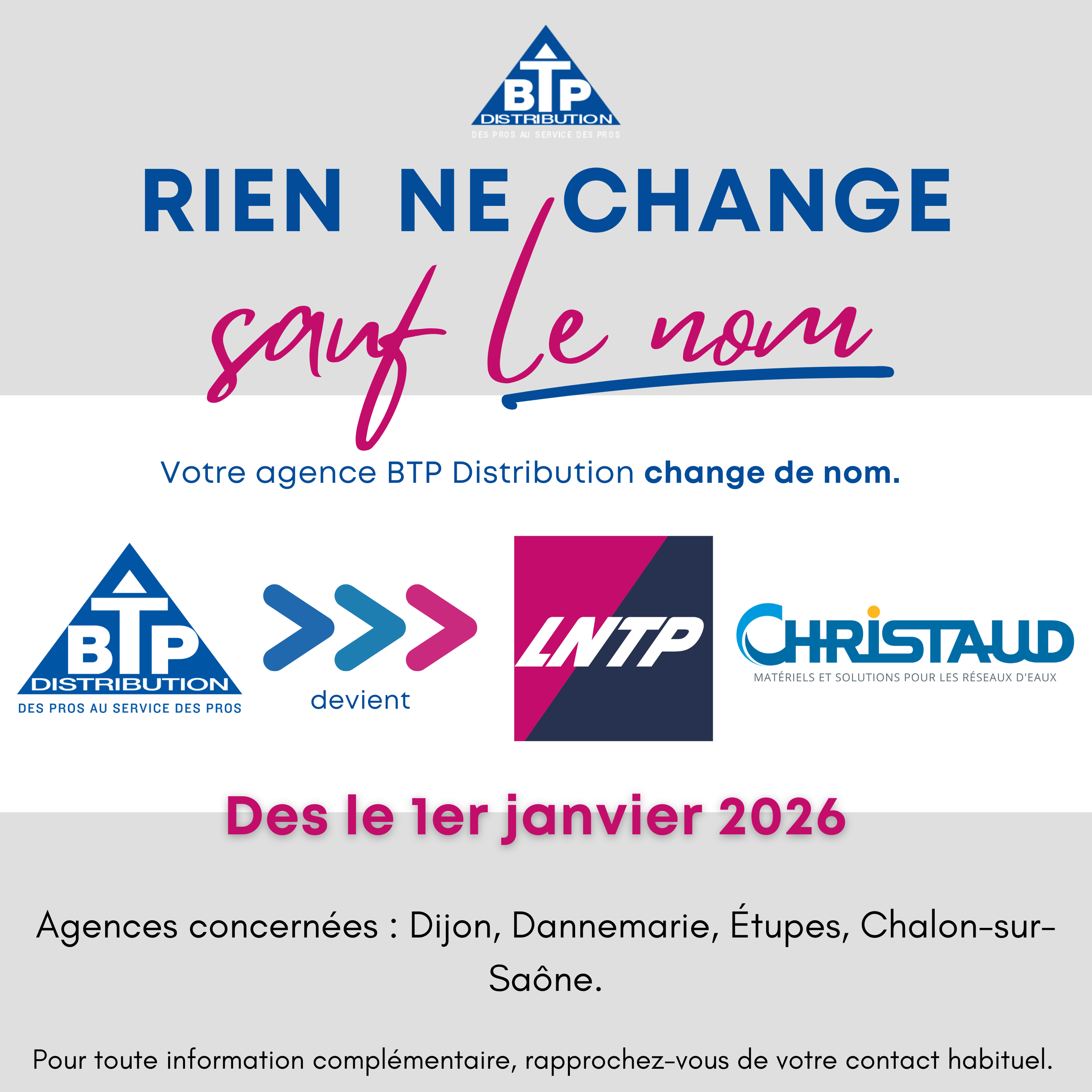 À compter du 1er janvier 2026, vos agences de Bourgogne–Franche-Comté (Dijon, Étupes, Chalon-sur-Saône et Dannemarie) changent de nom dans le cadre de l’évolution de notre organisation.